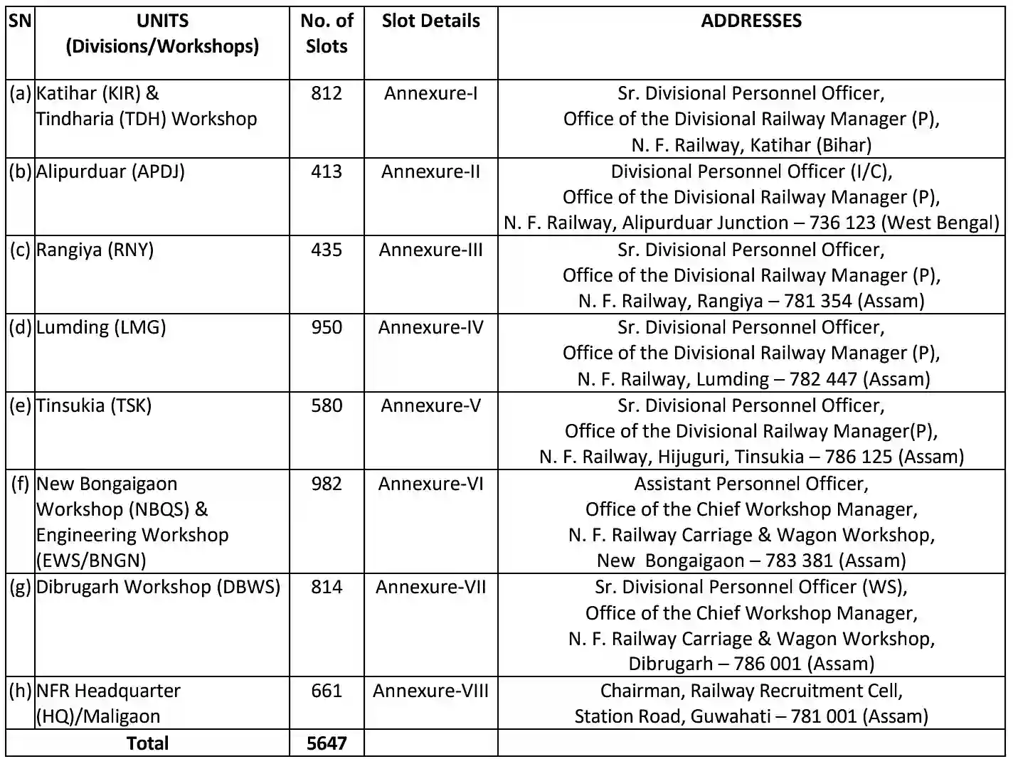 Qualification And Vacancy (पूर्वोत्तर सीमा रेलवे शैक्षणिक योग्यता)